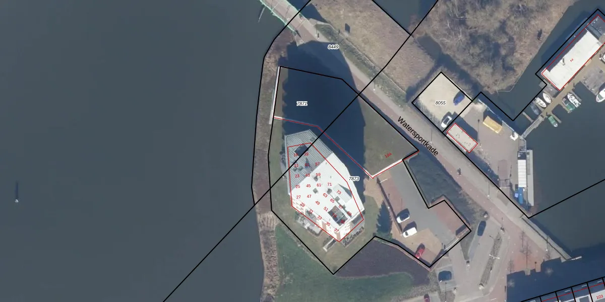 Het perceel waarop Watersportkade 49 staat heeft een oppervlakte van 612 m². Dit is een groot perceel. De perceeloppervlakte wordt geregistreerd door het Kadaster. Gedetailleerde informatie over de maten van dit perceel kunt u vinden in het rapport Kadastrale kaart met maatvoering van Watersportkade 49.