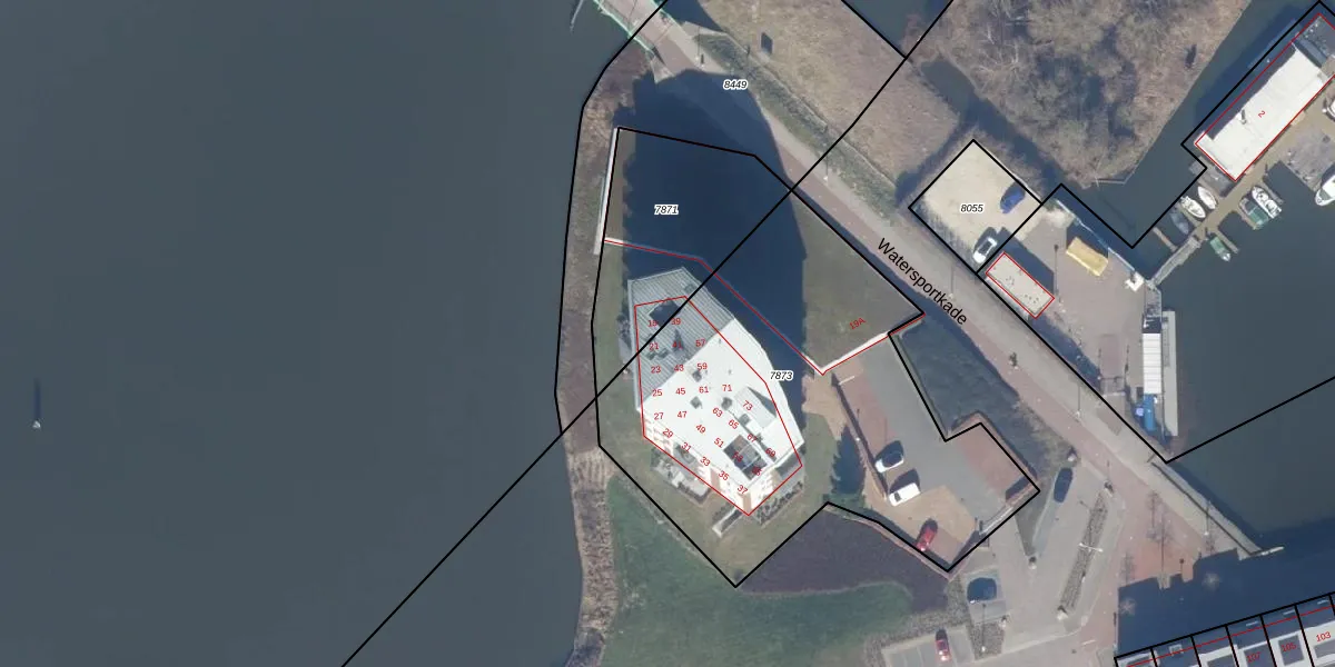 Het perceel waarop Watersportkade 51 staat heeft een oppervlakte van 2045 m². Dit is een zeer groot perceel. De perceeloppervlakte wordt geregistreerd door het Kadaster. Gedetailleerde informatie over de maten van dit perceel kunt u vinden in het rapport Kadastrale kaart met maatvoering van Watersportkade 51.