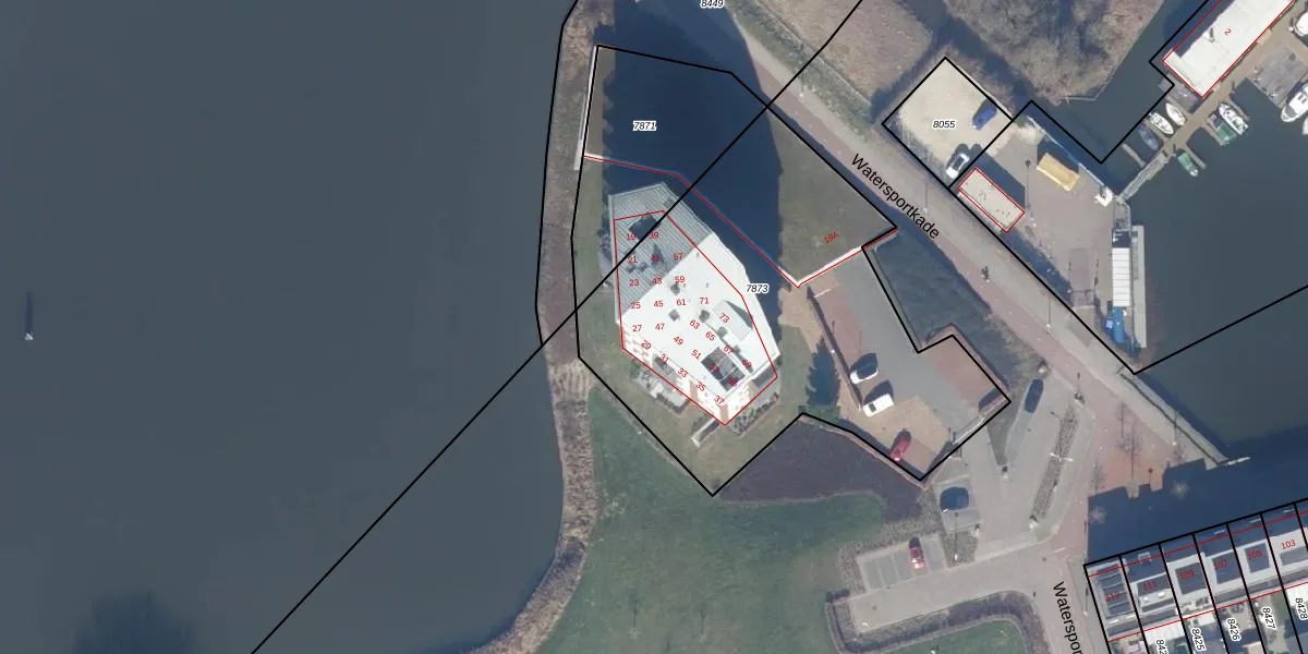 Het perceel waarop Watersportkade 61 staat heeft een oppervlakte van 2045 m². Dit is een zeer groot perceel. De perceeloppervlakte wordt geregistreerd door het Kadaster. Gedetailleerde informatie over de maten van dit perceel kunt u vinden in het rapport Kadastrale kaart met maatvoering van Watersportkade 61.
