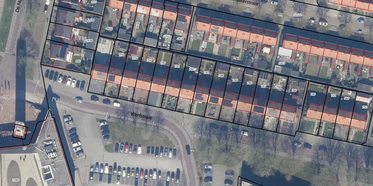 Het perceel waarop Werfstraat 13 staat heeft een oppervlakte van 244 m². Dit is een middelgroot perceel. De perceeloppervlakte wordt geregistreerd door het Kadaster. Gedetailleerde informatie over de maten van dit perceel kunt u vinden in het rapport Kadastrale kaart met maatvoering van Werfstraat 13.