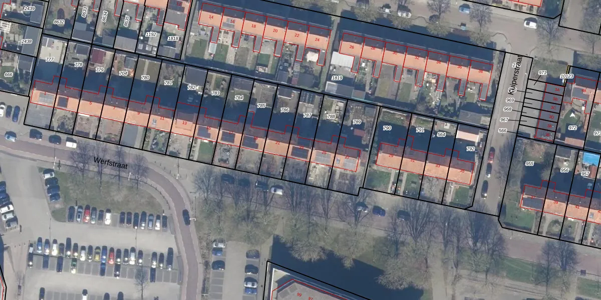 Het perceel waarop Werfstraat 23 staat heeft een oppervlakte van 243 m². Dit is een middelgroot perceel. De perceeloppervlakte wordt geregistreerd door het Kadaster. Gedetailleerde informatie over de maten van dit perceel kunt u vinden in het rapport Kadastrale kaart met maatvoering van Werfstraat 23.