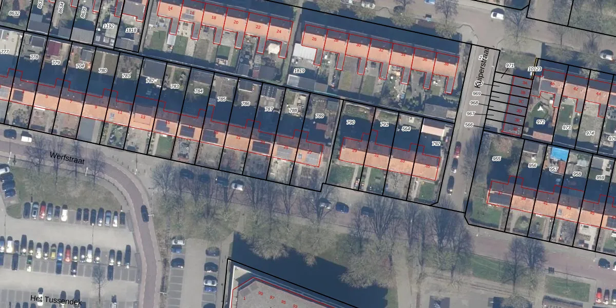 Het perceel waarop Werfstraat 27 staat heeft een oppervlakte van 337 m². Dit is een groot perceel. De perceeloppervlakte wordt geregistreerd door het Kadaster. Gedetailleerde informatie over de maten van dit perceel kunt u vinden in het rapport Kadastrale kaart met maatvoering van Werfstraat 27.