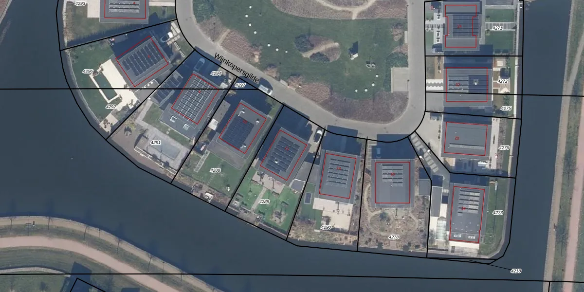Wijnkopersgilde 12 is gelegen op kadastraal perceel DTN01B4289. Deze kadastrale aanduiding is uniek en wordt gebruikt door het Kadaster om eigendomsrechten en andere zakelijke rechten vast te leggen. Het perceel maakt onderdeel uit van de kadastrale gemeente Dronten.