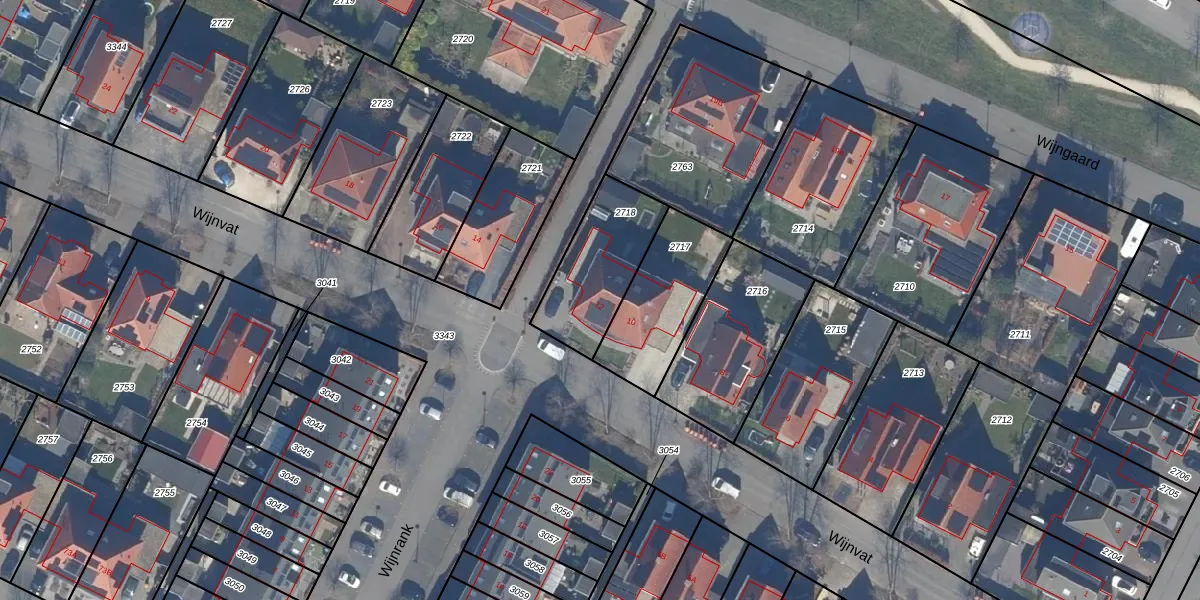 Het perceel waarop Wijnvat 12 staat heeft een oppervlakte van 340 m². Dit is een groot perceel. De perceeloppervlakte wordt geregistreerd door het Kadaster. Gedetailleerde informatie over de maten van dit perceel kunt u vinden in het rapport Kadastrale kaart met maatvoering van Wijnvat 12.