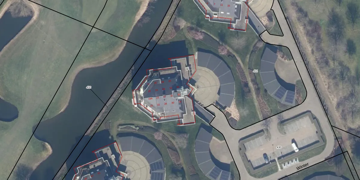 Het perceel waarop Winter 36 staat heeft een oppervlakte van 1,3 ha. Dit is een zeer groot perceel. De perceeloppervlakte wordt geregistreerd door het Kadaster. Gedetailleerde informatie over de maten van dit perceel kunt u vinden in het rapport Kadastrale kaart met maatvoering van Winter 36.