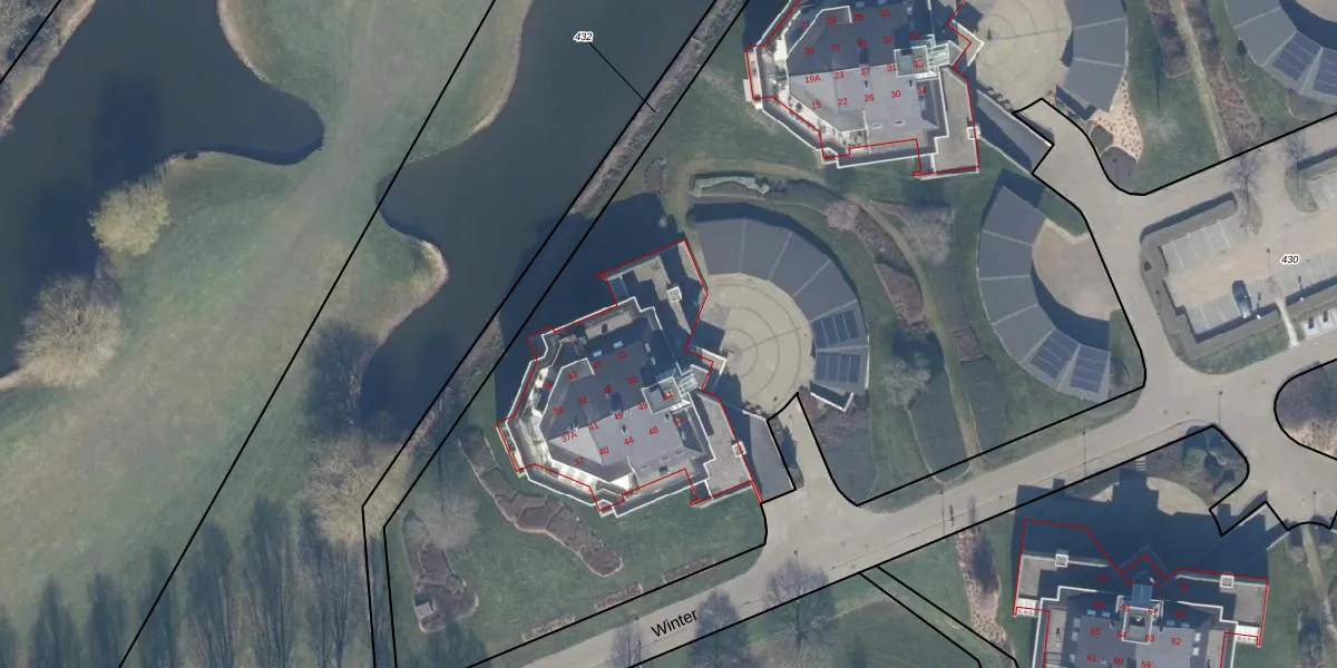Het perceel waarop Winter 42 staat heeft een oppervlakte van 1,3 ha. Dit is een zeer groot perceel. De perceeloppervlakte wordt geregistreerd door het Kadaster. Gedetailleerde informatie over de maten van dit perceel kunt u vinden in het rapport Kadastrale kaart met maatvoering van Winter 42.