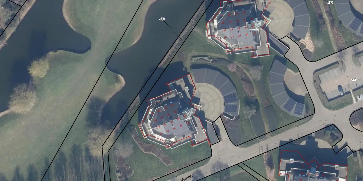 Het perceel waarop Winter 43 staat heeft een oppervlakte van 1,3 ha. Dit is een zeer groot perceel. De perceeloppervlakte wordt geregistreerd door het Kadaster. Gedetailleerde informatie over de maten van dit perceel kunt u vinden in het rapport Kadastrale kaart met maatvoering van Winter 43.