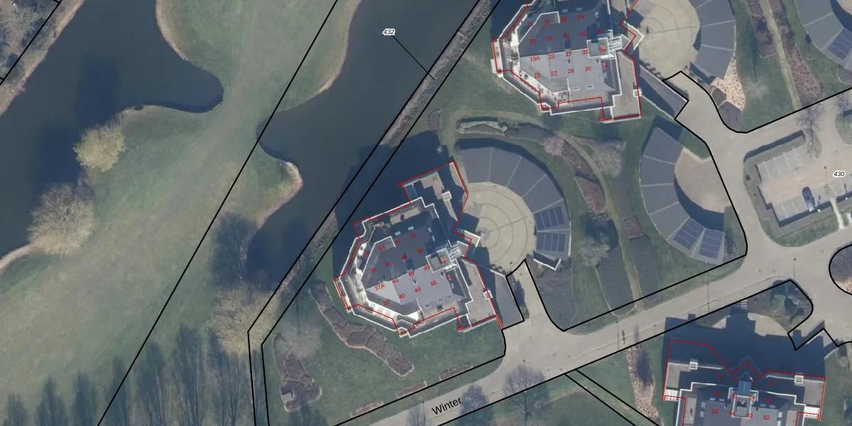 Het perceel waarop Winter 44 staat heeft een oppervlakte van 1,3 ha. Dit is een zeer groot perceel. De perceeloppervlakte wordt geregistreerd door het Kadaster. Gedetailleerde informatie over de maten van dit perceel kunt u vinden in het rapport Kadastrale kaart met maatvoering van Winter 44.