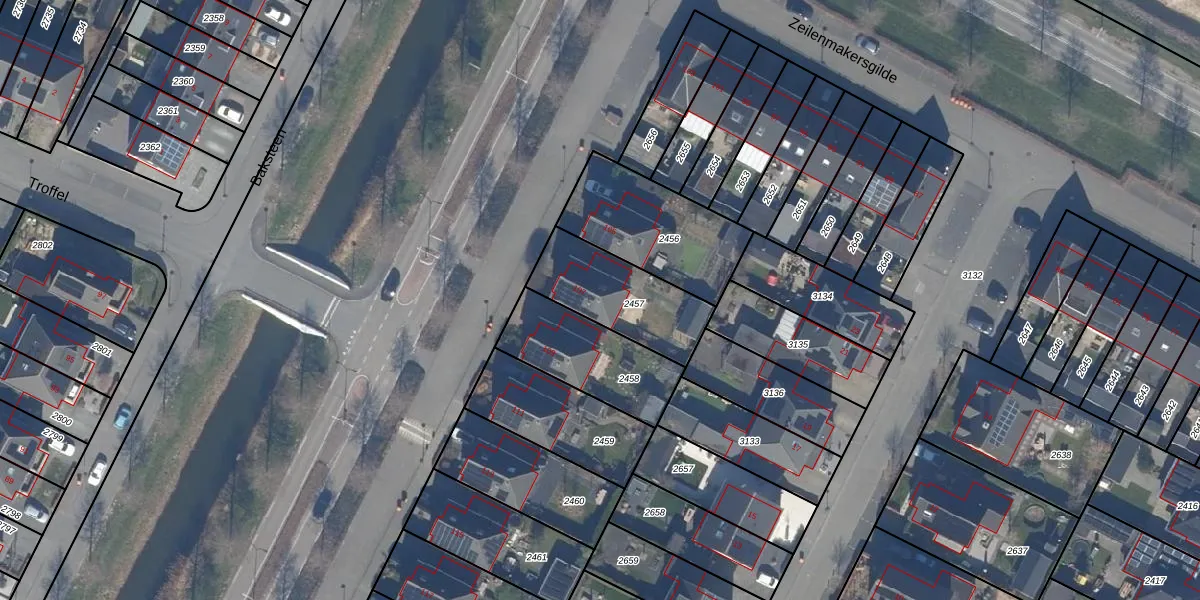Gebruik de zoekbalk of klik op een perceel voor informatie over de adressen binnen dit perceel.