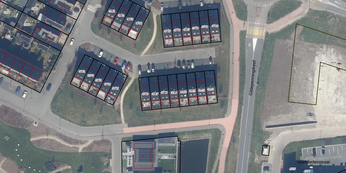 Het adres is gelegen op perceel 3769 in de sectie B en de kadastrale gemeente Dronten. De kadastrale aanduiding is aldus DTN01-B-3769. De gemiddelde perceelgrootte in Dronten is 1,8 ha. Dit perceel is kleiner: de perceeloppervlakte bedraagt 103 m². Het grootste perceel in de kadastrale gemeente is 25,03 km². Het kleinste perceel heeft een oppervlakte van 0 m². Op het perceel bevinden zich geen andere adressen. In de Basisregistratie Kadaster (BRK) werden de grenzen van het perceel geregistreerd op 27-09-2017.
