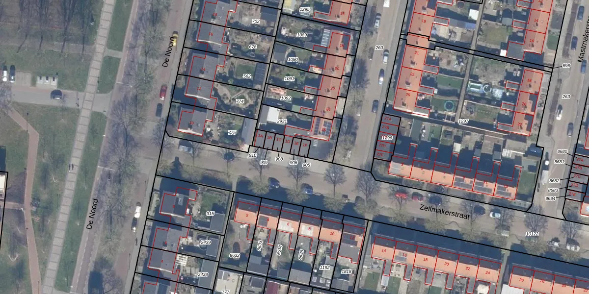 Het perceel waarop Zeilmakerstraat 1-E staat heeft een oppervlakte van 18 m². Dit is een klein perceel. De perceeloppervlakte wordt geregistreerd door het Kadaster. Gedetailleerde informatie over de maten van dit perceel kunt u vinden in het rapport Kadastrale kaart met maatvoering van Zeilmakerstraat 1-E.