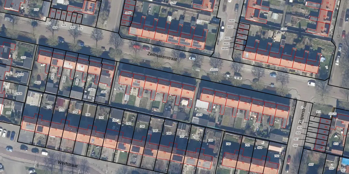 Het perceel waarop Zeilmakerstraat 22 staat heeft een oppervlakte van 2799 m². Dit is een zeer groot perceel. De perceeloppervlakte wordt geregistreerd door het Kadaster. Gedetailleerde informatie over de maten van dit perceel kunt u vinden in het rapport Kadastrale kaart met maatvoering van Zeilmakerstraat 22.