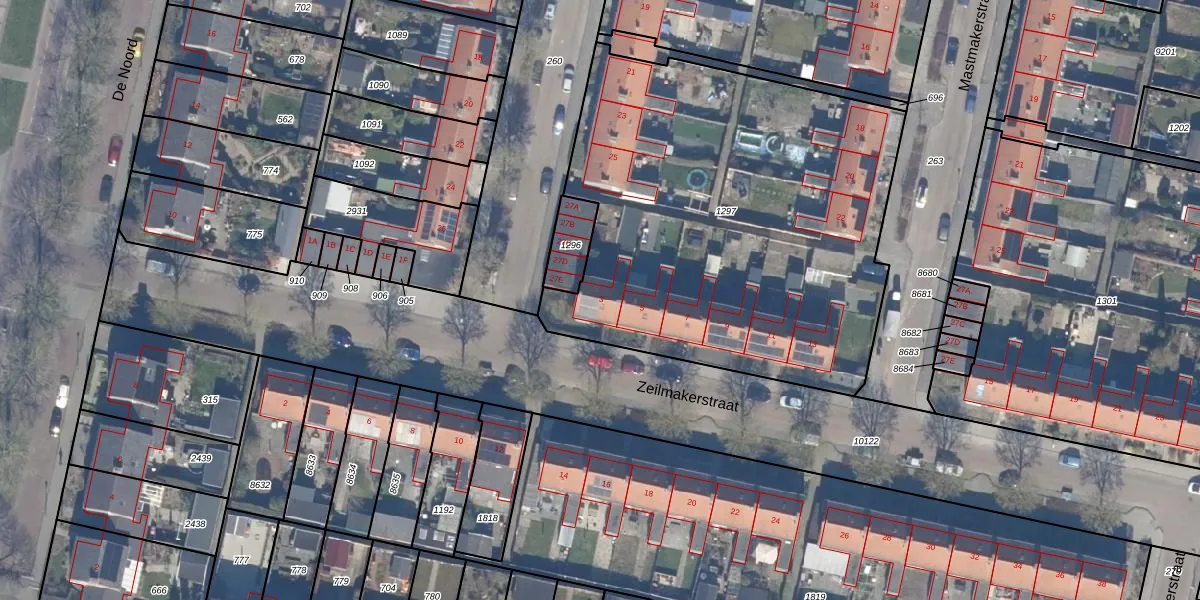 Het perceel waarop Zeilmakerstraat 3 staat heeft een oppervlakte van 2514 m². Dit is een zeer groot perceel. De perceeloppervlakte wordt geregistreerd door het Kadaster. Gedetailleerde informatie over de maten van dit perceel kunt u vinden in het rapport Kadastrale kaart met maatvoering van Zeilmakerstraat 3.