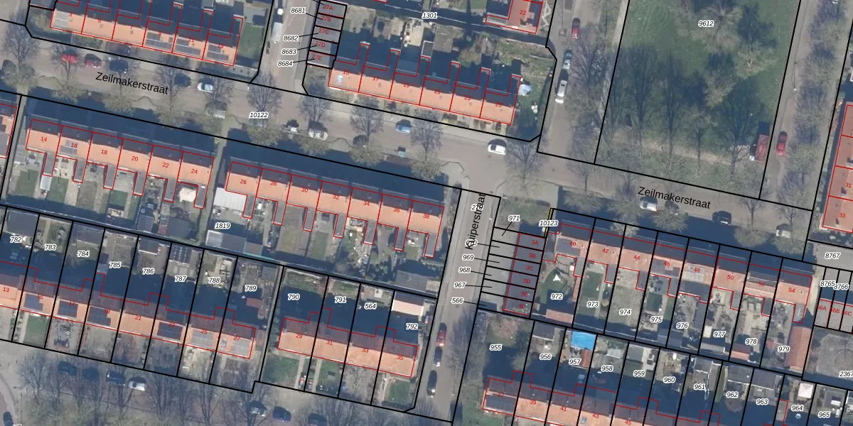 Het perceel waarop Zeilmakerstraat 38 staat heeft een oppervlakte van 2799 m². Dit is een zeer groot perceel. De perceeloppervlakte wordt geregistreerd door het Kadaster. Gedetailleerde informatie over de maten van dit perceel kunt u vinden in het rapport Kadastrale kaart met maatvoering van Zeilmakerstraat 38.