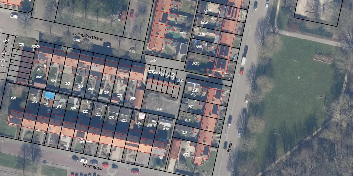 Het perceel waarop Zeilmakerstraat 56-F staat heeft een oppervlakte van 27 m². Dit is een klein perceel. De perceeloppervlakte wordt geregistreerd door het Kadaster. Gedetailleerde informatie over de maten van dit perceel kunt u vinden in het rapport Kadastrale kaart met maatvoering van Zeilmakerstraat 56-F.