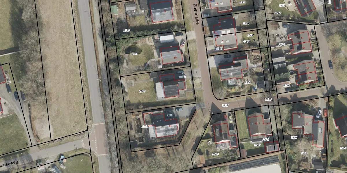 Het perceel waarop Boermarke 12 staat heeft een oppervlakte van 880 m². Dit is een groot perceel. De perceeloppervlakte wordt geregistreerd door het Kadaster. Gedetailleerde informatie over de maten van dit perceel kunt u vinden in het rapport Kadastrale kaart met maatvoering van Boermarke 12.