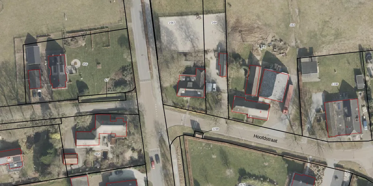 Het perceel waarop Hoofdstraat 1 staat heeft een oppervlakte van 2300 m². Dit is een zeer groot perceel. De perceeloppervlakte wordt geregistreerd door het Kadaster. Gedetailleerde informatie over de maten van dit perceel kunt u vinden in het rapport Kadastrale kaart met maatvoering van Hoofdstraat 1.