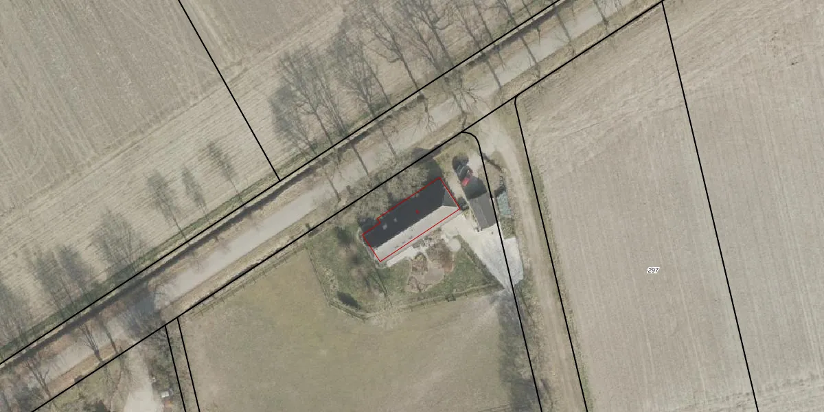 Het adres ligt op het perceel BGR01-K-2233, dat zich in de kadastrale gemeente Borger bevindt. De gemiddelde perceeloppervlakte in de kadastrale gemeente Borger is 1,1 ha. Dit perceel is met zijn 1,3 ha dus groter dan gemiddeld. Het kleinste perceel in de kadastrale gemeente is 0 m² groot. De grootste perceeloppervlakte is 5,76 km². Er zijn geen andere adressen aanwezig op het perceel. In de Basisregistratie Kadaster (BRK) werden de grenzen van het perceel geregistreerd op 28-11-2012.