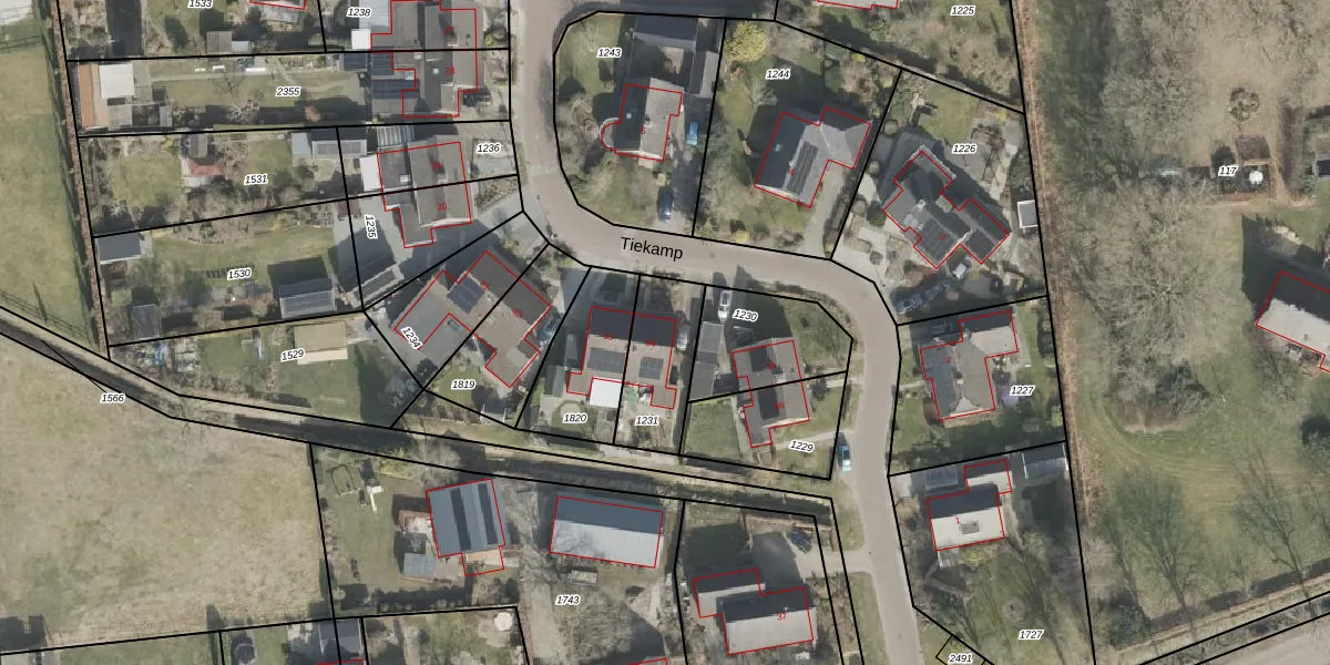 Het perceel waarop Tiekamp 34 staat heeft een oppervlakte van 260 m². Dit is een middelgroot perceel. De perceeloppervlakte wordt geregistreerd door het Kadaster. Gedetailleerde informatie over de maten van dit perceel kunt u vinden in het rapport Kadastrale kaart met maatvoering van Tiekamp 34.