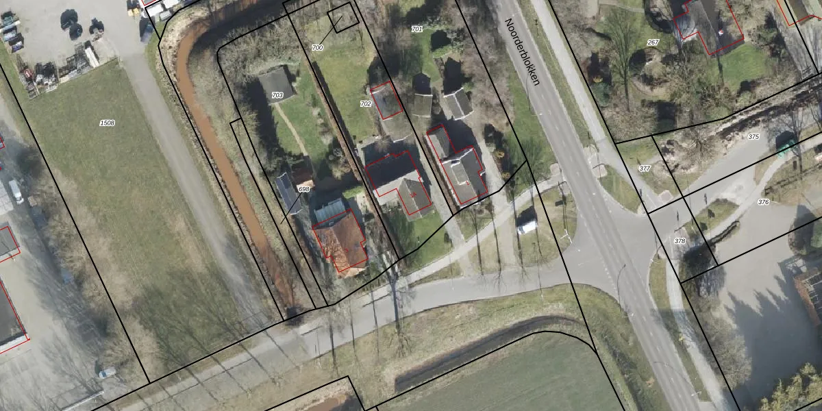 Noorderblokken 1-A is gelegen op kadastraal perceel BGR01R702. Deze kadastrale aanduiding is uniek en wordt gebruikt door het Kadaster om eigendomsrechten en andere zakelijke rechten vast te leggen. Het perceel maakt onderdeel uit van de kadastrale gemeente Borger.