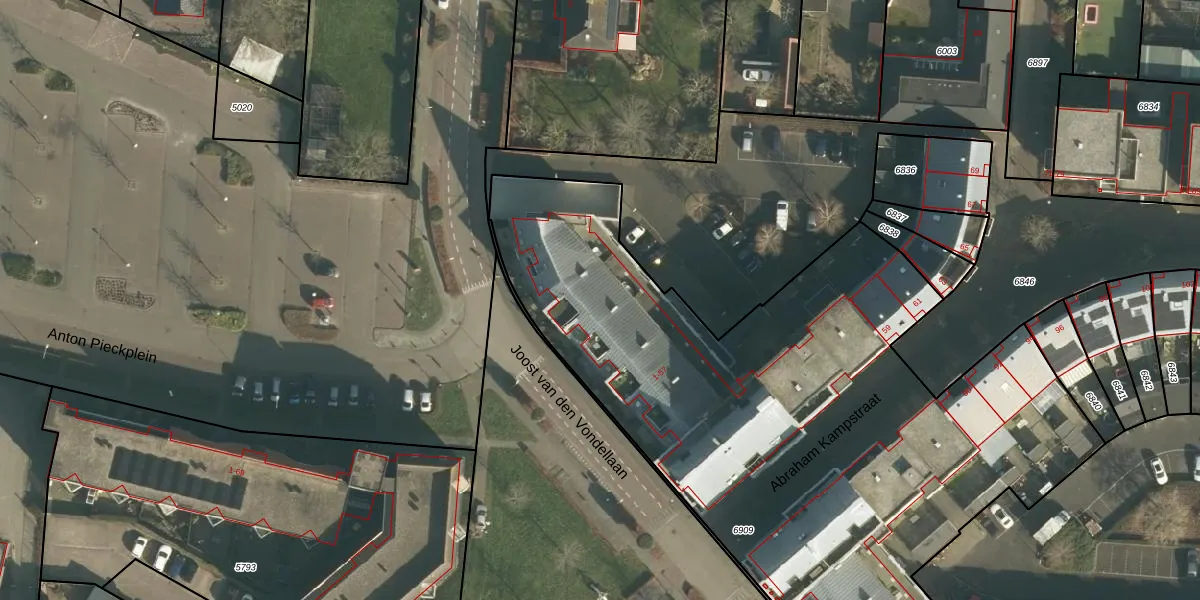 Het perceel waarop Abraham Kampstraat 23 staat heeft een oppervlakte van 5428 m². Dit is een zeer groot perceel. De perceeloppervlakte wordt geregistreerd door het Kadaster. Gedetailleerde informatie over de maten van dit perceel kunt u vinden in het rapport Kadastrale kaart met maatvoering van Abraham Kampstraat 23.