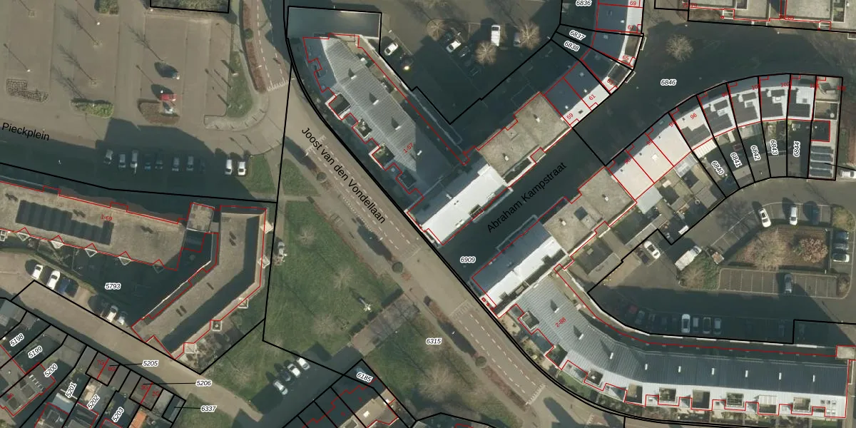 Het perceel waarop Abraham Kampstraat 5 staat heeft een oppervlakte van 5428 m². Dit is een zeer groot perceel. De perceeloppervlakte wordt geregistreerd door het Kadaster. Gedetailleerde informatie over de maten van dit perceel kunt u vinden in het rapport Kadastrale kaart met maatvoering van Abraham Kampstraat 5.