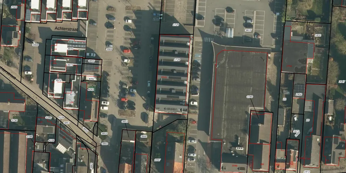 Het perceel waarop Achterstraat 55 staat heeft een oppervlakte van 1020 m². Dit is een zeer groot perceel. De perceeloppervlakte wordt geregistreerd door het Kadaster. Gedetailleerde informatie over de maten van dit perceel kunt u vinden in het rapport Kadastrale kaart met maatvoering van Achterstraat 55.