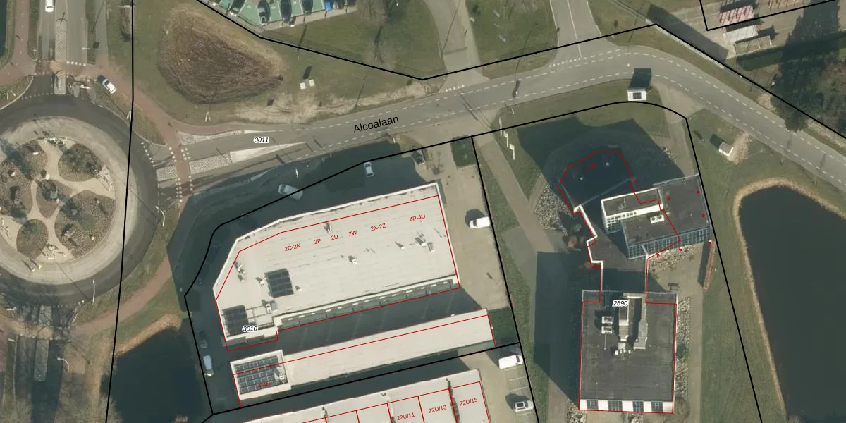 Het perceel waarop Alcoalaan 2-C staat heeft een oppervlakte van 3435 m². Dit is een zeer groot perceel. De perceeloppervlakte wordt geregistreerd door het Kadaster. Gedetailleerde informatie over de maten van dit perceel kunt u vinden in het rapport Kadastrale kaart met maatvoering van Alcoalaan 2-C.