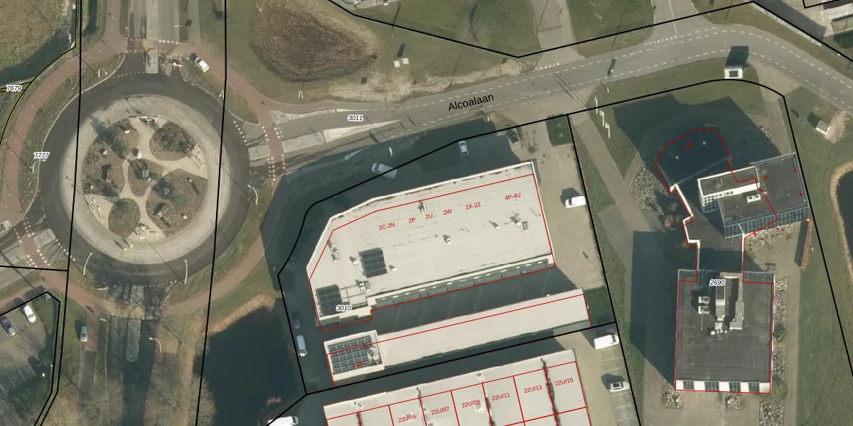Het perceel waarop Alcoalaan 2-H staat heeft een oppervlakte van 3435 m². Dit is een zeer groot perceel. De perceeloppervlakte wordt geregistreerd door het Kadaster. Gedetailleerde informatie over de maten van dit perceel kunt u vinden in het rapport Kadastrale kaart met maatvoering van Alcoalaan 2-H.