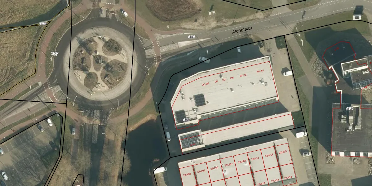 Het perceel waarop Alcoalaan 2-M staat heeft een oppervlakte van 3435 m². Dit is een zeer groot perceel. De perceeloppervlakte wordt geregistreerd door het Kadaster. Gedetailleerde informatie over de maten van dit perceel kunt u vinden in het rapport Kadastrale kaart met maatvoering van Alcoalaan 2-M.
