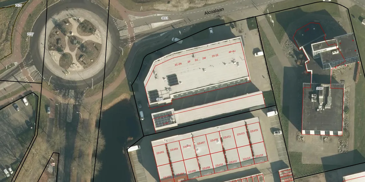 Het perceel waarop Alcoalaan 2-U staat heeft een oppervlakte van 3435 m². Dit is een zeer groot perceel. De perceeloppervlakte wordt geregistreerd door het Kadaster. Gedetailleerde informatie over de maten van dit perceel kunt u vinden in het rapport Kadastrale kaart met maatvoering van Alcoalaan 2-U.