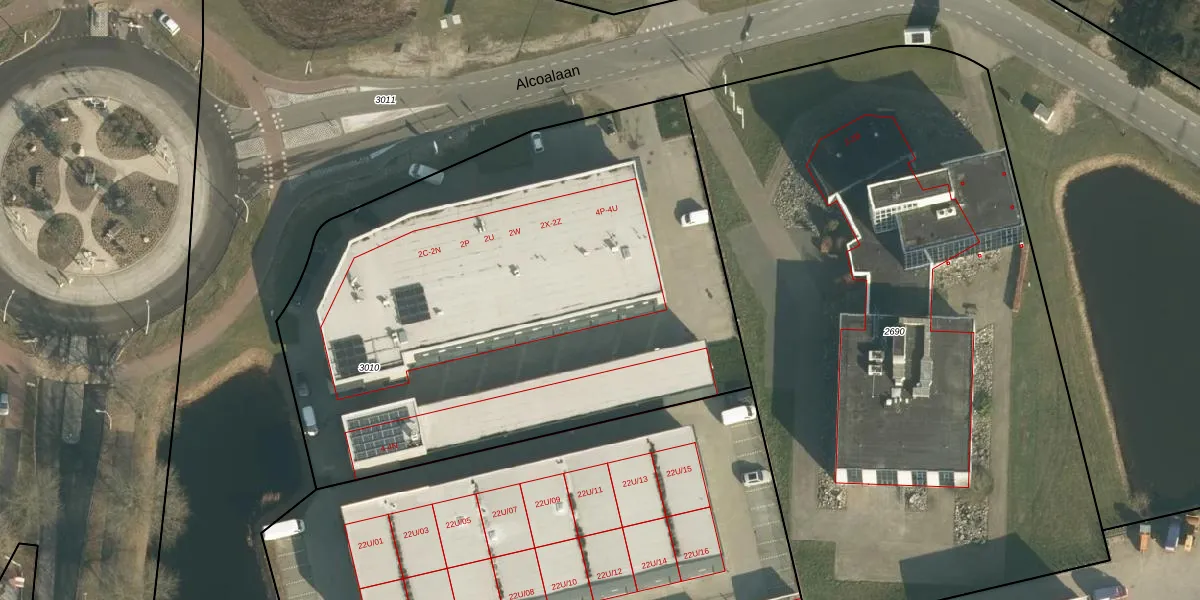 Het perceel waarop Alcoalaan 4-P staat heeft een oppervlakte van 3435 m². Dit is een zeer groot perceel. De perceeloppervlakte wordt geregistreerd door het Kadaster. Gedetailleerde informatie over de maten van dit perceel kunt u vinden in het rapport Kadastrale kaart met maatvoering van Alcoalaan 4-P.
