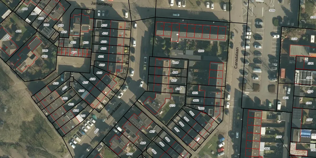 Amerikalaan 107 is gelegen op kadastraal perceel DNN00L4207. Deze kadastrale aanduiding is uniek en wordt gebruikt door het Kadaster om eigendomsrechten en andere zakelijke rechten vast te leggen. Het perceel maakt onderdeel uit van de kadastrale gemeente Drunen.