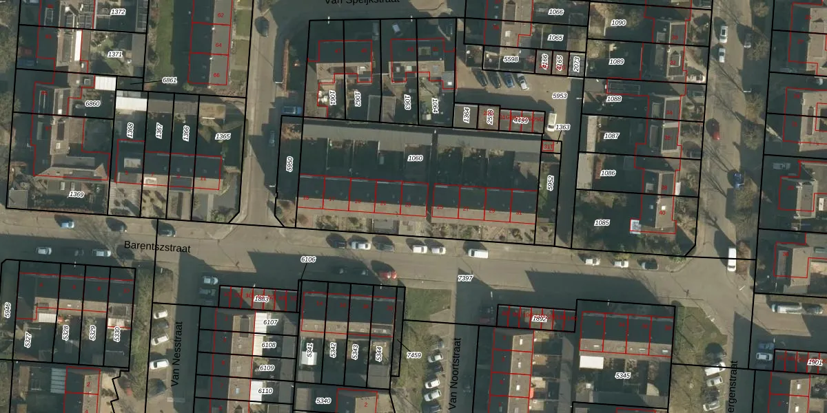 Het perceel waarop Barentszstraat 23 staat heeft een oppervlakte van 1563 m². Dit is een zeer groot perceel. De perceeloppervlakte wordt geregistreerd door het Kadaster. Gedetailleerde informatie over de maten van dit perceel kunt u vinden in het rapport Kadastrale kaart met maatvoering van Barentszstraat 23.