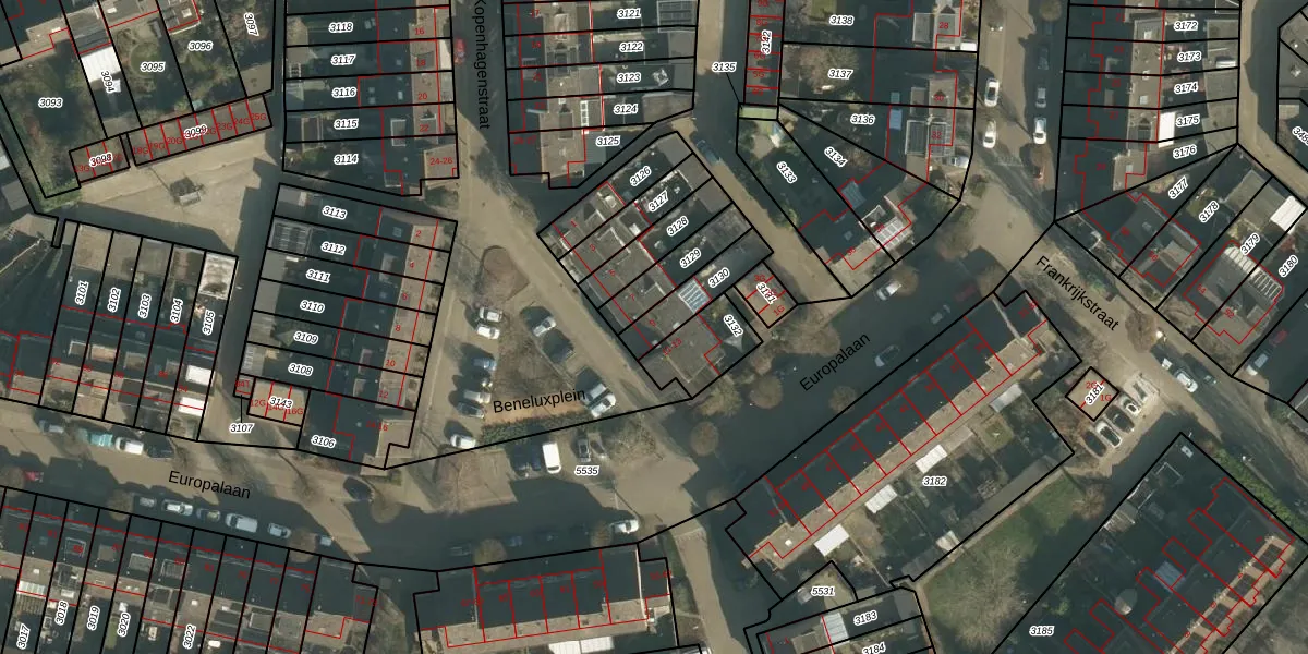 Het perceel waarop Beneluxplein 9 staat heeft een oppervlakte van 130 m². Dit is een middelgroot perceel. De perceeloppervlakte wordt geregistreerd door het Kadaster. Gedetailleerde informatie over de maten van dit perceel kunt u vinden in het rapport Kadastrale kaart met maatvoering van Beneluxplein 9.