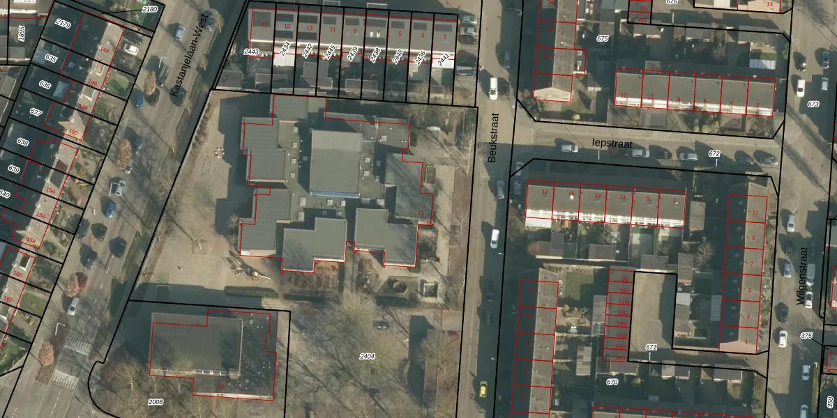 Beukstraat 13 is gelegen op kadastraal perceel DNN00H2404. Deze kadastrale aanduiding is uniek en wordt gebruikt door het Kadaster om eigendomsrechten en andere zakelijke rechten vast te leggen. Het perceel maakt onderdeel uit van de kadastrale gemeente Drunen.