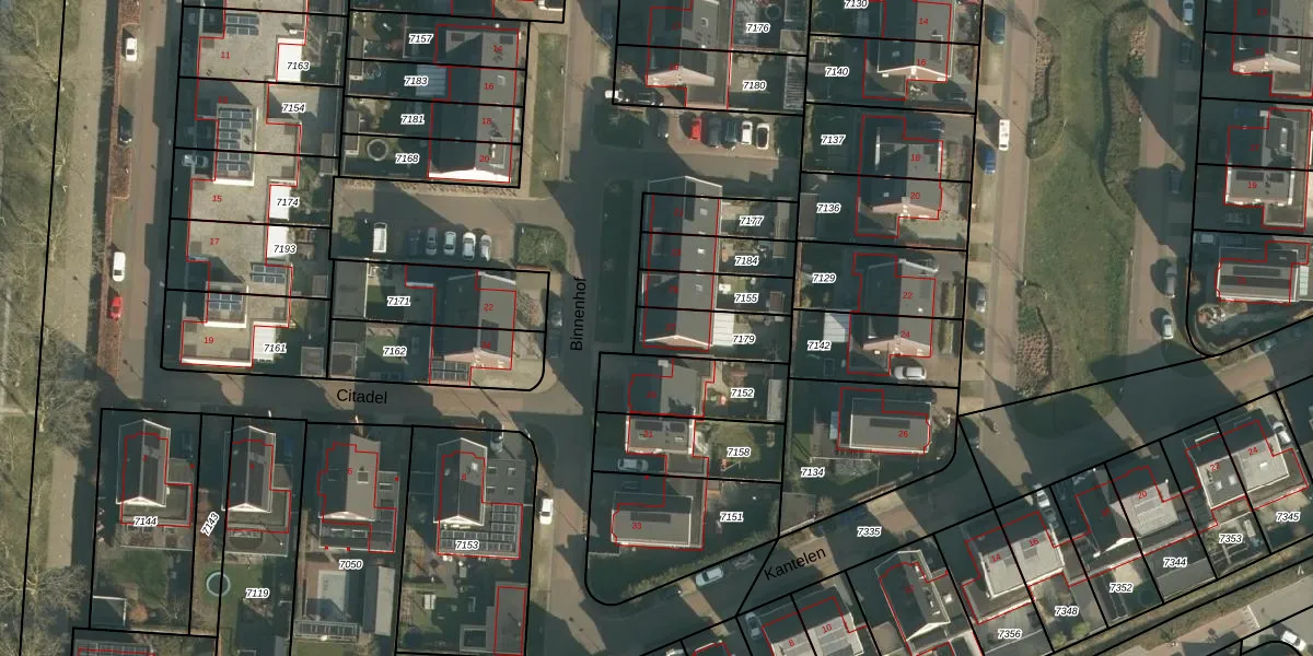 Het perceel waarop Binnenhof 27 staat heeft een oppervlakte van 175 m². Dit is een middelgroot perceel. De perceeloppervlakte wordt geregistreerd door het Kadaster. Gedetailleerde informatie over de maten van dit perceel kunt u vinden in het rapport Kadastrale kaart met maatvoering van Binnenhof 27.