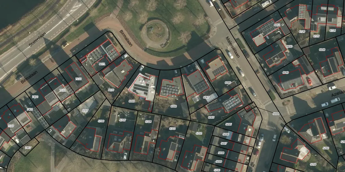 Birmalaan 5 is gelegen op kadastraal perceel DNN00L6068. Deze kadastrale aanduiding is uniek en wordt gebruikt door het Kadaster om eigendomsrechten en andere zakelijke rechten vast te leggen. Het perceel maakt onderdeel uit van de kadastrale gemeente Drunen.