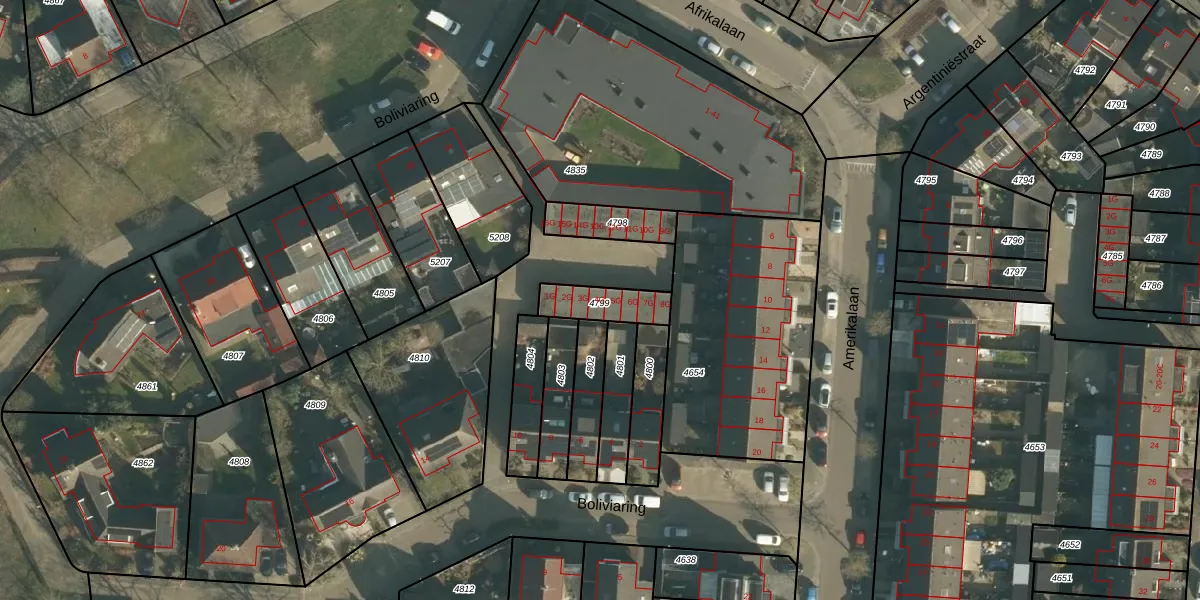 Het perceel waarop Boliviaring 4-G staat heeft een oppervlakte van 121 m². Dit is een middelgroot perceel. De perceeloppervlakte wordt geregistreerd door het Kadaster. Gedetailleerde informatie over de maten van dit perceel kunt u vinden in het rapport Kadastrale kaart met maatvoering van Boliviaring 4-G.