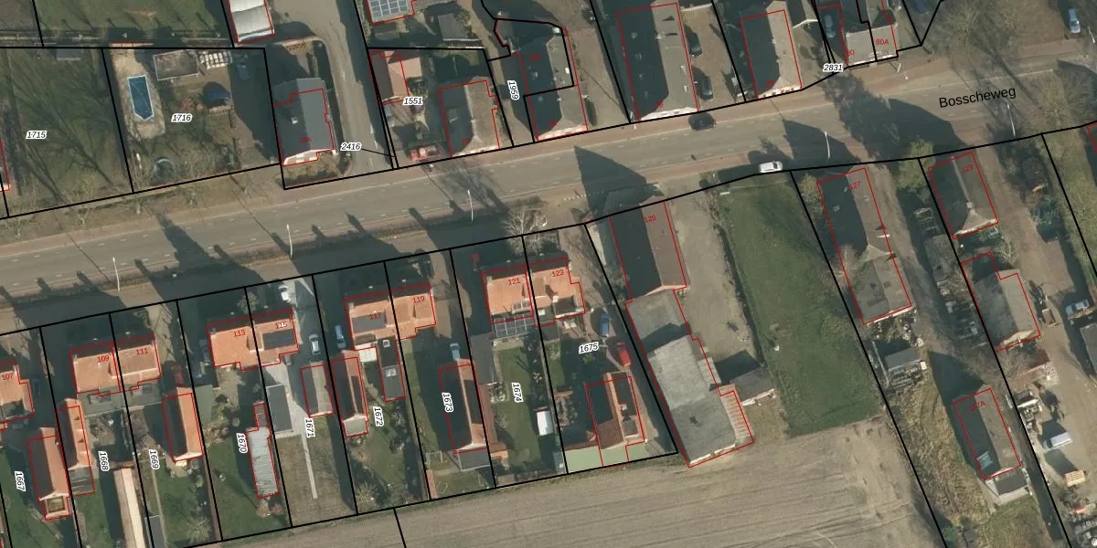 Bosscheweg 123 is gelegen op kadastraal perceel DNN00L1675. Deze kadastrale aanduiding is uniek en wordt gebruikt door het Kadaster om eigendomsrechten en andere zakelijke rechten vast te leggen. Het perceel maakt onderdeel uit van de kadastrale gemeente Drunen.