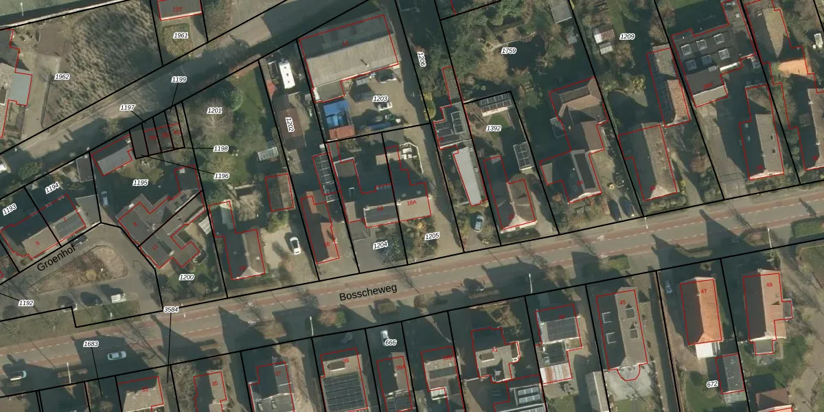 Bosscheweg 18-A is gelegen op kadastraal perceel DNN00K1205. Deze kadastrale aanduiding is uniek en wordt gebruikt door het Kadaster om eigendomsrechten en andere zakelijke rechten vast te leggen. Het perceel maakt onderdeel uit van de kadastrale gemeente Drunen.