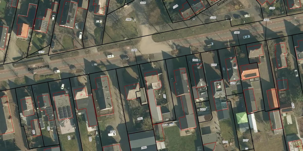 Het perceel waarop Bosscheweg 21 staat heeft een oppervlakte van 683 m². Dit is een groot perceel. De perceeloppervlakte wordt geregistreerd door het Kadaster. Gedetailleerde informatie over de maten van dit perceel kunt u vinden in het rapport Kadastrale kaart met maatvoering van Bosscheweg 21.