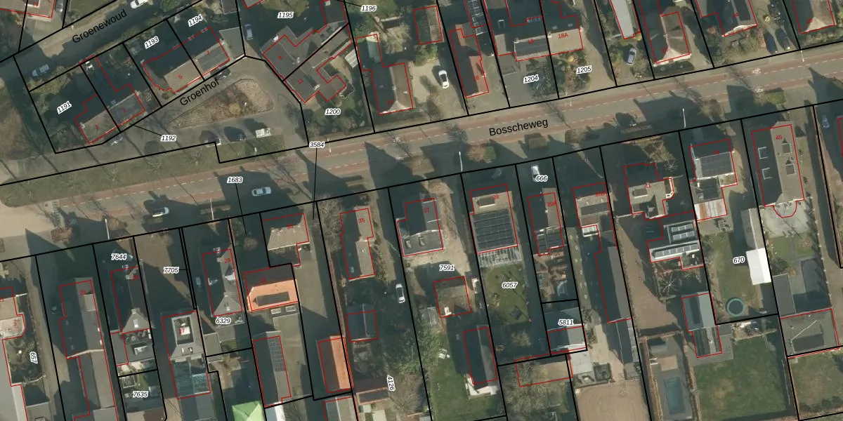 Bosscheweg 37 is gelegen op kadastraal perceel DNN00L7591. Deze kadastrale aanduiding is uniek en wordt gebruikt door het Kadaster om eigendomsrechten en andere zakelijke rechten vast te leggen. Het perceel maakt onderdeel uit van de kadastrale gemeente Drunen.