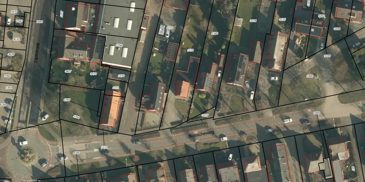 Het perceel waarop Bosscheweg 6 staat heeft een oppervlakte van 1000 m². Dit is een zeer groot perceel. De perceeloppervlakte wordt geregistreerd door het Kadaster. Gedetailleerde informatie over de maten van dit perceel kunt u vinden in het rapport Kadastrale kaart met maatvoering van Bosscheweg 6.
