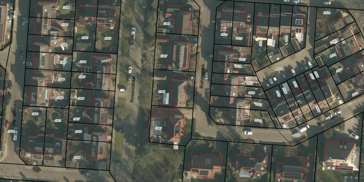 Het perceel waarop Brahmspark 6 staat heeft een oppervlakte van 461 m². Dit is een groot perceel. De perceeloppervlakte wordt geregistreerd door het Kadaster. Gedetailleerde informatie over de maten van dit perceel kunt u vinden in het rapport Kadastrale kaart met maatvoering van Brahmspark 6.
