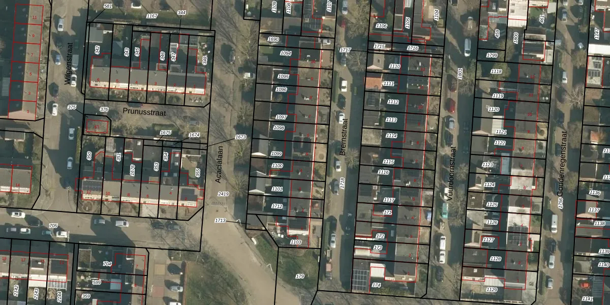 Gebruik de zoekbalk of klik op een perceel voor informatie over de adressen binnen dit perceel.