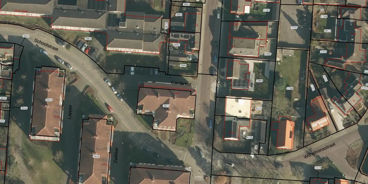 Het perceel waarop Cambreur 1 staat heeft een oppervlakte van 555 m². Dit is een groot perceel. De perceeloppervlakte wordt geregistreerd door het Kadaster. Gedetailleerde informatie over de maten van dit perceel kunt u vinden in het rapport Kadastrale kaart met maatvoering van Cambreur 1.