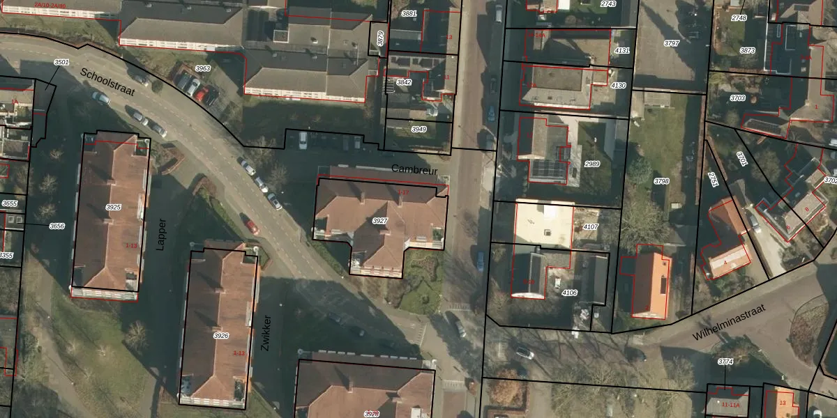 Het perceel waarop Cambreur 16 staat heeft een oppervlakte van 555 m². Dit is een groot perceel. De perceeloppervlakte wordt geregistreerd door het Kadaster. Gedetailleerde informatie over de maten van dit perceel kunt u vinden in het rapport Kadastrale kaart met maatvoering van Cambreur 16.
