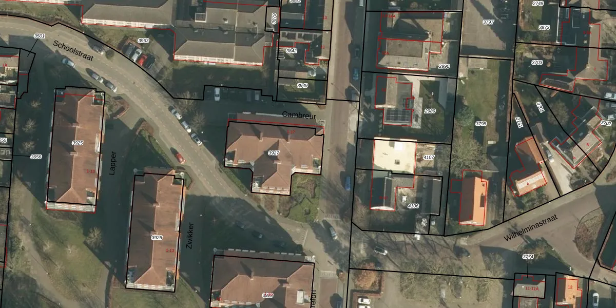 Het perceel waarop Cambreur 17 staat heeft een oppervlakte van 555 m². Dit is een groot perceel. De perceeloppervlakte wordt geregistreerd door het Kadaster. Gedetailleerde informatie over de maten van dit perceel kunt u vinden in het rapport Kadastrale kaart met maatvoering van Cambreur 17.