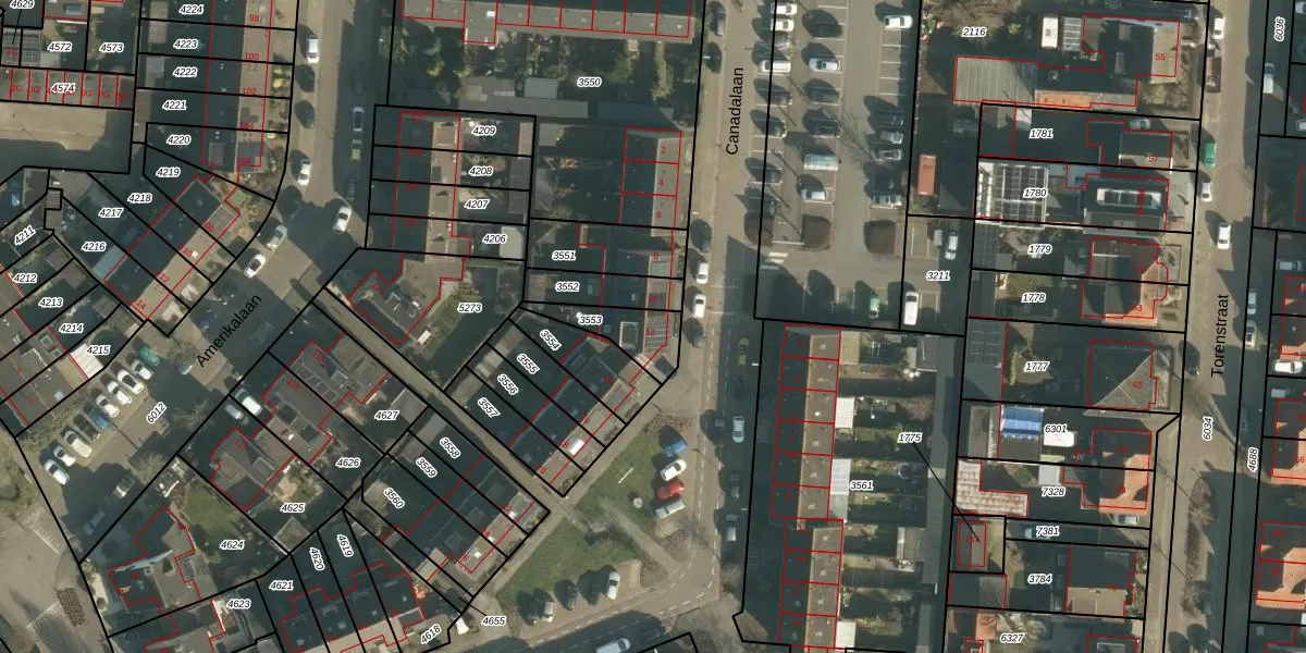 Canadalaan 12 is gelegen op kadastraal perceel DNN00L3553. Deze kadastrale aanduiding is uniek en wordt gebruikt door het Kadaster om eigendomsrechten en andere zakelijke rechten vast te leggen. Het perceel maakt onderdeel uit van de kadastrale gemeente Drunen.